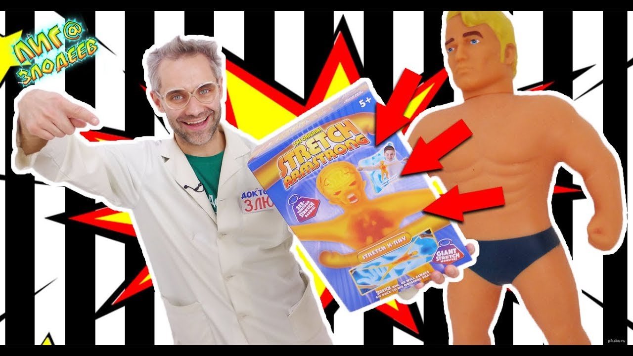Узнать больше о Стретч можно здесь: https://goo.gl/odRK4j Стретч Армстронг (Stretch Armstrong) – это игрушка, которая тянется в 4-6 раз и затем легко принимает свой прежний вид. Что бы ты ни делал со стретчем, он все равно вернется в свою первоначальную форму! ДОКТОР #ЗЛЮ и #СТРЕТЧ #ИКС-РЭЙ МЭН! Злодейская супер растяжимость! У героев появился серьёзный союзник - СТРЕТЧ АРМСТРОНГ! Доктор Злю решил пробраться в супер секретную лабораторию, чтобы найти на героя управу - и нашёл супер злодея ИКС-РЭЯ, который тянется ещё сильнее, чем Армстронг! Смотри наше новое крутое видео для детей, чтобы участвовать в злодейских приключениях! Не пропускай новинки с самыми изощрёнными злодействами канала ЛИГА ЗЛОДЕЕВ! https://www.youtube.com/channel/UCF0KkwGrn4eFvl24W5bbjPg/?sub_confirmation=1 Здесь можно следить за действиями главного врага Доктора Злю - канал Папа Роб Шоу! https://www.youtube.com/channel/UC5scTgc8DqV9Xq-xNvgTMPw/?sub_confirmation=1 СПАСАТЕЛИ игрушек - герои, готовые противостоять козням Доктора Злю! https://www.youtube.com/channel/UC9-eWn5roqlMDYVVWgt7XQA/?sub_confirmation=1 Играй с машинками на канале АЛЕКС ГАРАЖ! https://www.youtube.com/channel/UCMaKEYt8gUz4fX95mGtHIXg/?sub_confirmation=1 Ищи нас в социальных сетях! ВКонтакте: https://vk.com/club132423271 Фейсбук: https://www.facebook.com/4ScreensShow Твиттер: https://twitter.com/4Screens_Studio Инстаграм: https://www.instagram.com/4screensstudio/