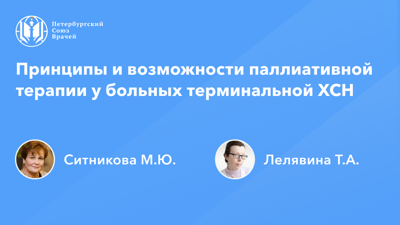Видеозапись онлайн-семинара «Принципы и возможности паллиативной терапии у больных терминальной ХСН» Сайт: www.spb.doctor Дата проведения: 10.05.2023, 20:00 Страница мероприятия: https://spb.doctor/i/23051020/ Программа: 00:01:05 Терминальная ХСН: введение в проблему Ситникова Мария Юрьевна 00:10:40 Принципы и возможности паллиативной терапии у больных терминальной ХСН. Лелявина Татьяна Александровна 00:54:15 Современный пациент: 10 лет жизни с СНнФВ. Дополнительные компоненты терапии, о которых полезно помнить. Ситникова Мария Юрьевна 01:39:42 Ответы на вопросы О семинаре: Знание стратегий терапии пациентов с терминальной стадией хронической сердечной недостаточности (ХСН) на различных этапах оказания медицинской помощи позволяет эффективно реализовать подходы, направленные на улучшение качества жизни пациентов. В онлайн-семинаре будут расссмотрены дополнительные компоненты терапии, о которых полезно помнить.