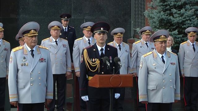 Уважаемые коллеги! Дорогие гости! От всей души поздравляю вас со знаковым событием в жизни Московского университета МВД России имени Владимира Яковлевича Кикотя – очередным выпуском специалистов для органов внутренних дел! Стало доброй традицией проводить его в сердце нашей Родины – на Красной площади. Мы дорожим этой честью и гордимся предоставленной возможностью. Сегодня дипломы о высшем образовании получат более тысячи человек. В их числе будущие следователи, дознаватели, судебные эксперты, сотрудники оперативных служб, подразделений информационной и экономической безопасности, охраны общественного порядка. В текущем году 159 слушателей окончили университет с отличием, 16 – с золотой медалью. В строю выпускников – лауреаты стипендий Президента и Правительства Российской Федерации, научных и творческих конкурсов, победители спортивных соревнований на первенство страны. Многие из вас при несении службы уже проявили мужество, отвагу и бдительность в ходе задержания преступников, оказания помощи гражданам. Более 120 человек отмечены ведомственными наградами. Отрадно, что 38 выпускников университета, выбирая профессию полицейского, продолжили семейную династию. Эти факты свидетельствуют о вашей зрелости, добросовестном подходе к учёбе, стремлении к знаниям, которые на долгие годы станут основой для личностного роста. В практической деятельности вам предстоит принимать сложные и ответственные решения. Строгое соблюдение законности и норм профессиональной этики будет способствовать повышению доверия к органам внутренних дел, укреплению их авторитета в обществе. Вы приступаете к исполнению служебных обязанностей в судьбоносный для нашей страны период. Защита её суверенитета и национальных интересов требуют от каждого из нас максимальной самоотдачи. Сегодня в зоне проведения специальной военной операции сотрудники полиции выполняют задачи по обеспечению правопорядка, пресечению криминальных посягательств. Проявленные ими высочайшие гражданские качества, верность долгу и Присяге должны стать для вас примером доблести и подлинного патриотизма. Эффективность оперативно-служебной деятельности во многом зависит от слаженной работы в коллективе. На местах руководители и старшие коллеги всегда готовы оказать вам всестороннюю помощь и поддержку, поделиться богатым профессиональным опытом. В рамках подготовки квалифицированных кадров для МВД России Московский университет также реализует образовательные программы в интересах правоохранительных органов дружественных государств. В едином строю выпускников – 59 специалистов из 26 стран ближнего зарубежья, Африки, Латинской Америки, Центральной и Юго-Восточной Азии. Мы от всей души поздравляем наших иностранных коллег с окончанием учёбы. Уверен, знания, полученные в стенах крупнейшего полицейского вуза Российской Федерации, будут востребованы в полной мере. Тесное сотрудничество наших стран и ведомств, включая сферу образования, является залогом успешной борьбы с общим злом – преступностью, которая не имеет ни национальности, ни границ. Хотел бы поблагодарить профессорско-преподавательский состав, ветеранов университета – всех, кто осуществлял и обеспечивал учебно-воспитательный процесс. Будущие победы и достижения выпускников – в том числе и резул