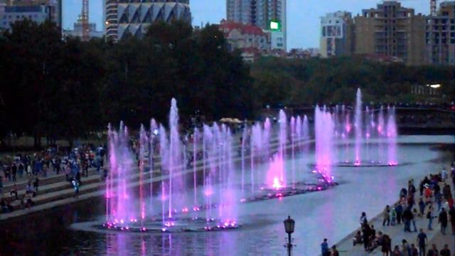 музыкальный фонтан г.Екатеринбург, плотинка, ночь музыки