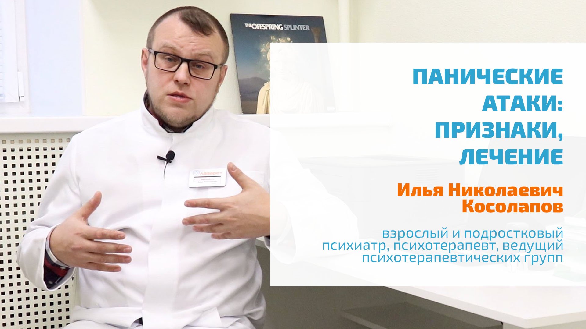 #ПСИХОЛОГИЯ #ПСИХИАТРИЯ #ЗДОРОВЬЕ https://lazaretspb.ru/ Панические атаки распространенное расстройство психики. Состояния паники могут быть различными по интенсивности, месту возникновения. Приступы паники не имеют конкретных причин возникновения, но могут быть ассоциированы человеком с местом, событиями или каким-то специфическими триггерами. Лечение приступов паники проводят психиатры, психотерапевты или гипнотерапевты. В зависимости от случая лечение панического расстройства может быть психотерапевтическим, с применением метода гипноза, медикаментозным или комбинированным. 00:00 • Панические атаки, приступы паники ? ЗАПИСЬ, КОНСУЛЬТАЦИЯ МЫ РАБОТАЕМ КРУГЛОСУТОЧНО, БЕЗ ВЫХОДНЫХ Если у Вас возникли вопросы о вариантах лечения психических расстройств и зависимостей, наши операторы ответят на них. Звоните — мы работаем круглосуточно, в том числе в выходные и праздничные дни. +7 (812) 604-33-30 8 (800) 300-64-39 ? ГОСПИТАЛИЗАЦИЯ В СТАЦИОНАР ИНОГОРОДНИМ, ЖИТЕЛЯМ БЛИЖНЕГО И ДАЛЬНЕГО ЗАРУБЕЖЬЯ Для иногородних, жителей ближнего и дальнего зарубежья, желающих пройти полноценное лечение в психиатрическом или наркологическом стационаре нашей клиники, возможна консультация по Skype, WhatsApp, Viber, Telegram. Напишите нам на адрес электронный почты, указав в письме контактную информацию, причину обращения, удобное для Вас время звонка. info@lazaretspb.ru ? КЛИНИКА ЛАЗАРЕТ — ОСОЗНАННЫЙ ВЫБОР ПСИХИАТРИЯ, ПСИХОТЕРАПИЯ, НАРКОЛОГИЯ И ПСИХОЛОГИЧЕСКАЯ ПОМОЩЬ Клиника Лазарет — одна из старейших клиник Санкт-Петербурга, специализирующаяся на помощи людям с легкими, пограничными и тяжелыми расстройствами психики, различными зависимостями. Также мы помогаем родственникам пациентов на всех этапах лечения — от мотивации к прохождению полноценного лечения, до ресоциализации — момента возвращения человека в общество и в семью, требующего специализированной психологической помощи и коррекции поведения. https://lazaretspb.ru https://vk.com/klinikalazaret
