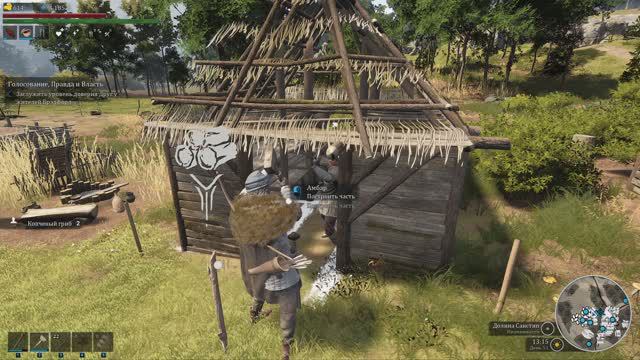 волки блокируют дорожный знак . отбиваем нападение рейдеров . теперь я защитник Хэрндэн . строим амбары .