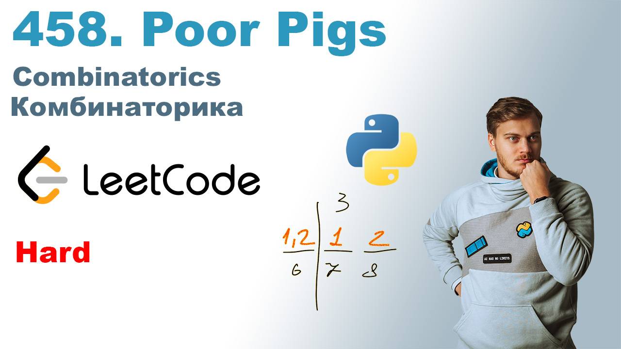 Решение LeetCode задачи "458. Poor Pigs" Задача на LeetCode: https://leetcode.com/problems/poor-pigs/ Код с решением тут: https://github.com/mahenzon/leetcode-solutions/blob/master/python/0458-Poor-Pigs.py Ссылки: * Все ссылки: https://taplink.cc/mahenzon - Основной ютуб канал https://www.youtube.com/@SurenKhorenyan - Второй ютуб канал https://www.youtube.com/@SurenLife - Канал в Telegram: https://t.me/Khorenyan - Паблик в ВК: https://vk.com/SurenKhorenyan - RUTUBE: https://home.strannik-j.org/u/Suren/ Метки: 00:00 Начало 2:15 Рисование 13:53 Код 14:44 Случайные числа и итог