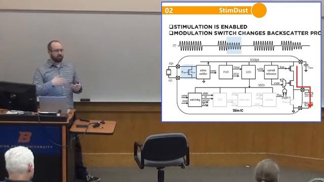 Presenter: Dr. Ben Johnson Devices that sense and modulate the electrical signals of the nervous system can be used to treat a broad range of diseases, providing a more targetted and efficacious treatment than traditional systemic medications. Recent research efforts have focused on miniaturizing these medical devices as a path forward to precision medicine. In this talk, I will present a background of bioelectronic medicine and discuss my recent work in developing an ultrasonically powered implant. The miniaturized implant delivers controlled stimulation and is demonstrated in vivo on a rat sciatic nerve. Recorded on February 22, 2018 at Boise State University