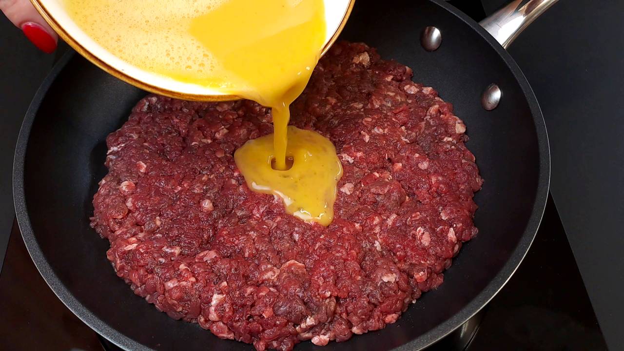 Влейте яйца в говяжий фарш, Вы будете восторге! Быстрый завтрак за 5 минут!