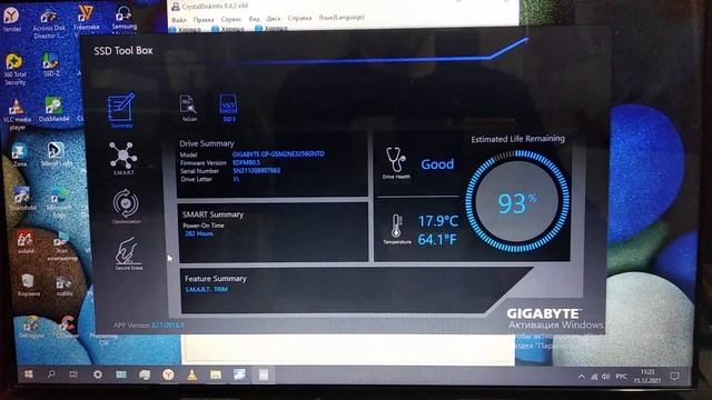 Здоровье SSD Gigabyte M 2 NVMe SSD GP GSM2NE3256GNTD 30 ТБ