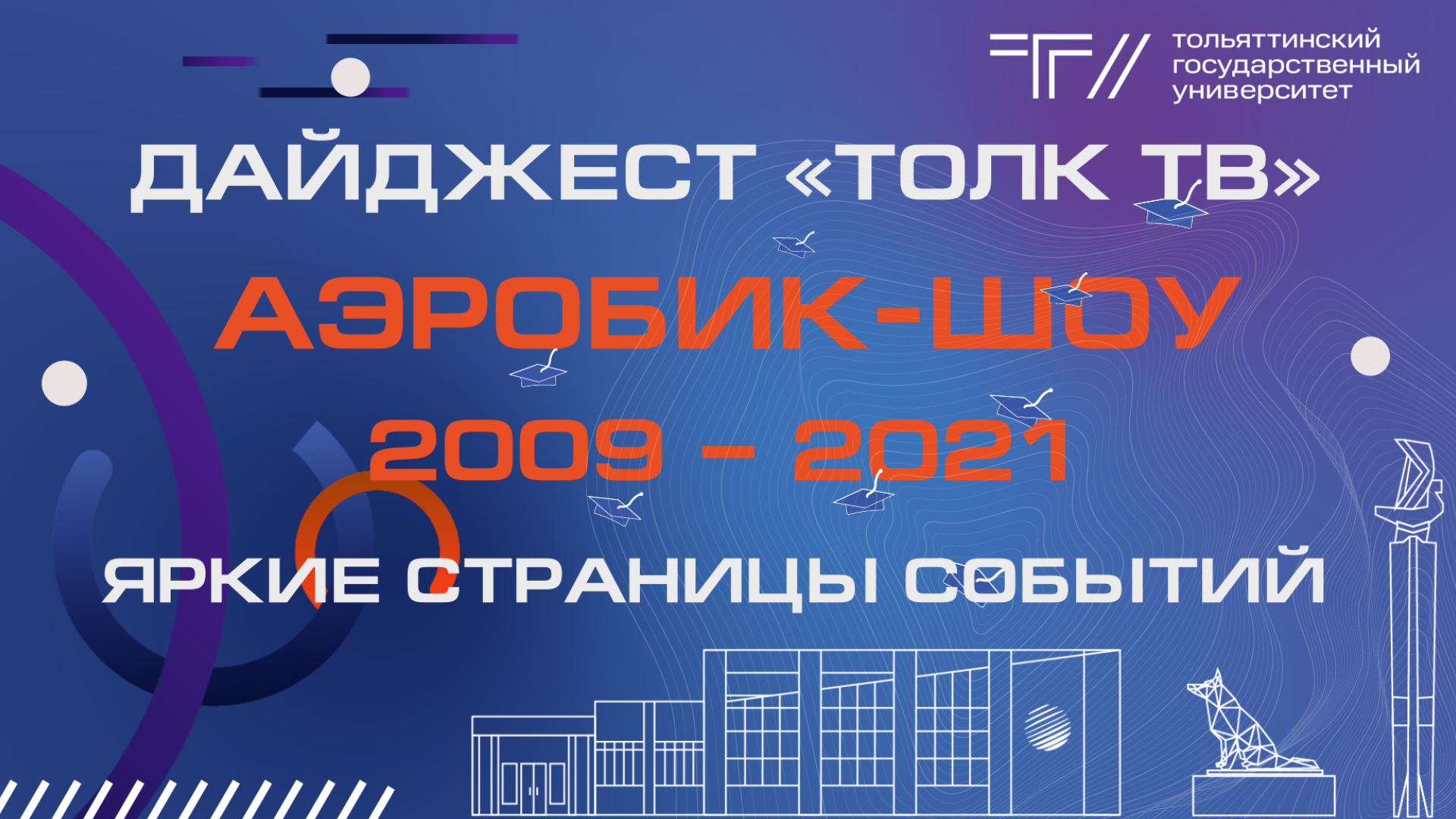 Смотрите подборки сюжетов «ТОЛК ТВ» разных лет, о самых ярких и незабываемых событиях в жизни Тольяттинского госуниверситета. Фестиваль Аэробик-шоу зажигает в ТГУ уже 30 лет! За эти годы участниками конкурса стали пять тысяч студентов, более пятисот команд. Ищите в кадрах себя и своих друзей! 00:00 – 2009 год 02:02 – 2010 год 04:24 – 2011 год 06:32 – 2012 год 10:38 – 2013 год 14:18 – 2014 год 18:05 – 2015 год 22:59 – 2016 год 27:50 – 2017 год 32:45 – 2018 год 36:46 – 2019 год 39:27 – 2020 год 43:50 – 2021 год
