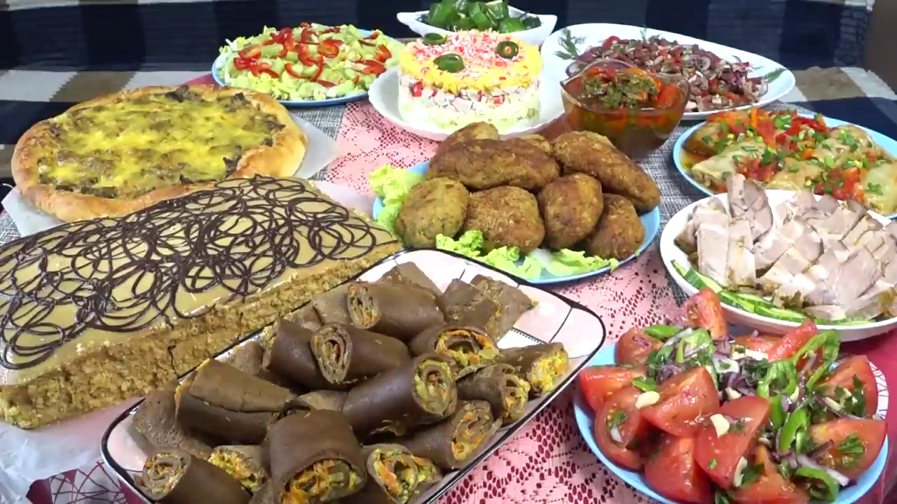 Очень простое и вкусное меню на новогодний стол из доступных нам продуктов! Некоторые блюда готовим заранее ,за несколько дней перед Новым годом ,тем самым облегчая труд хозяйки .Как мы не стараемся придумать, и чем то удивить своих близких, новым блюдом, или выпечкой, но все равно возвращаемся к старым ,и проверенным годами рецептам ! Потому как это вкусно. Сегодня я делюсь рецептами моей семьи ,эти рецепты частые гости, на наших праздничных столах ! Простые в приготовлении не затратные по финансам и очень вкусные! торт "Медовик" мука 370 гр (15 ст л с горкой ) яйцо 6 шт некрупных или 5 шт, но крупных сахар 180 гр (8 ст л с горкой) мед 200 гр (6 ст л) сода 1 ч л маргарин молочный 250 гр (хорошего качества) сметана 600 гр+ сгущеное молоко вареное 1 банка +молоко 5 ст л сгущеное простое Буженина свиная шея 1,300 соль 2 ч л перец красный перец черн чеснок 1 гол соевый соус 3 ст л сухой чеснок 1 пачка паприка 1 пачка лавровый лист масло раст 3 ст л или 2 ст л время приготовления 2 часа, и еще 40 минут при выключенной духовке при температуре 170 градусов рулетики из куриной печени печень куриная 700 гр молоко 200 мл яйцо 2 шт соль1 ч л мука 3 ст л с горкой большой намазка морковь 2 шт лук 2 гол соль черн перец майонез 2 ст л укроп голубцы (капуста св , в микроволновке, импульсом минуты 4 или 5) свинина 900 гр лук 2 гол масло раст 4 ст л чеснок 5 зубцов соль черн перец рис 250 граммовый стакан ,уже отварного зажарка морковь 2 гол лук 2 гол соль черн перец лечо домашнее с помидорами 1 литр в духовку на 1 час 200 гр куриные котлеты бедра куриные 900 гр лук 2 гол чеснок 4 зубца сухари домашние 2 или 3 ст л соль черн перец масло раст 3 ст л закуска из перца масло раст 6 ст л перец 4 шт укроп петрушка сахар 2 ст л уксус 9% 2 ст л чеснок 5 зубцов паприка 1 пачка время приготовления 20 минут при 200 градусов салат с фасолью фасоль красная 1 банка лук красный1/2 гол маринованный перец сладкий 1/2 шт петрушка буженина 150 гр заправка лимоный сок 2 ст л сахар 2 ст л чеснок 2 зубца перец красный масло раст 2 ст л салат крабовый салат овощной #менюнановогоднийстол#новогднийстол2023год#праздничныйстол#закуски#салаты#голубцы#котлеты#горячиенапраздник#рецептыизмяса#рецептыизфарша#буженина#мясовдуховке#еда#кулинария##кухня #валентиналайф #торт #выпечкакчаю # медовик#######################################