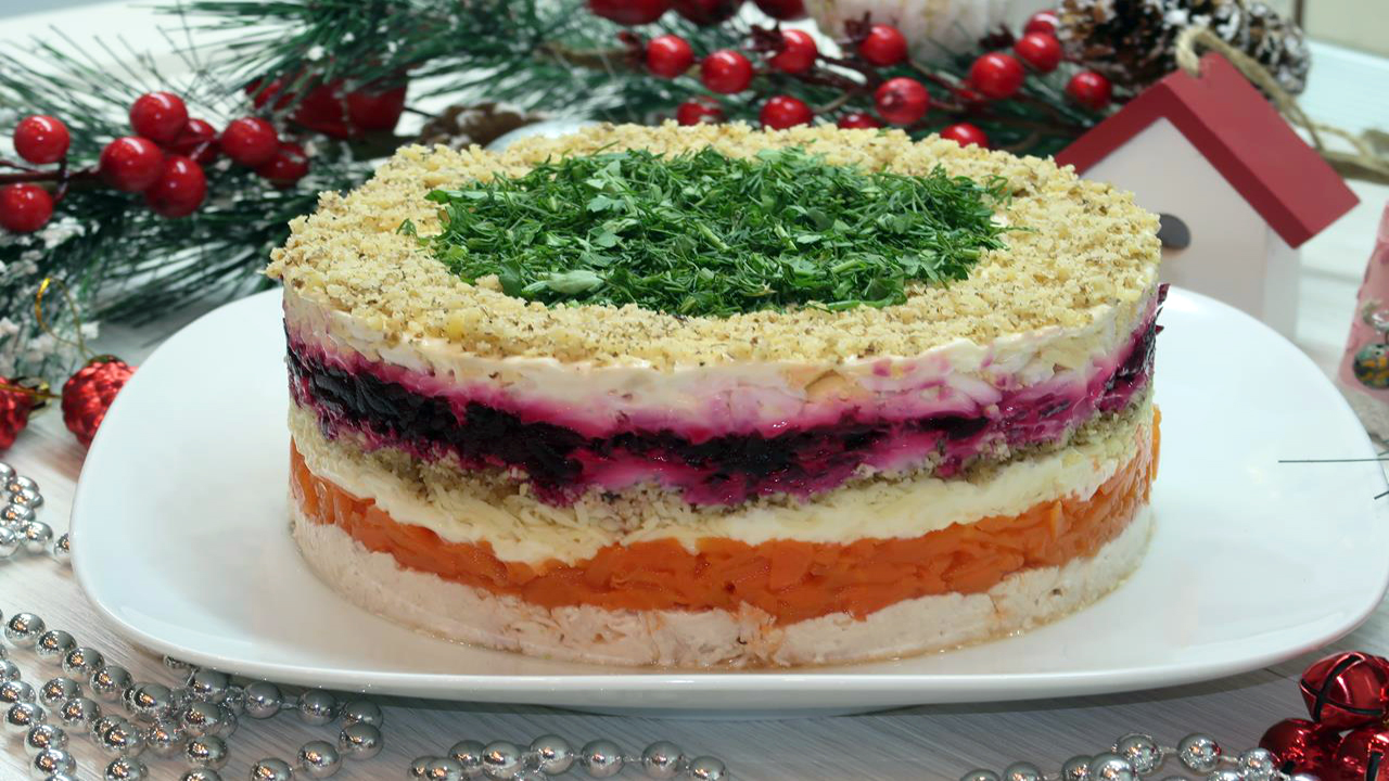 Салат Генерал Наивкуснейший свекольный салат с курицей и орехами на праздничный стол