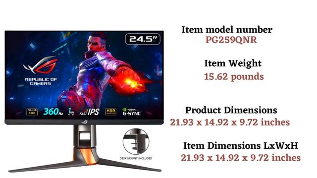 ASUS ROG Swift 360Hz PG259QNR 24.5” HDR Gaming Monitor