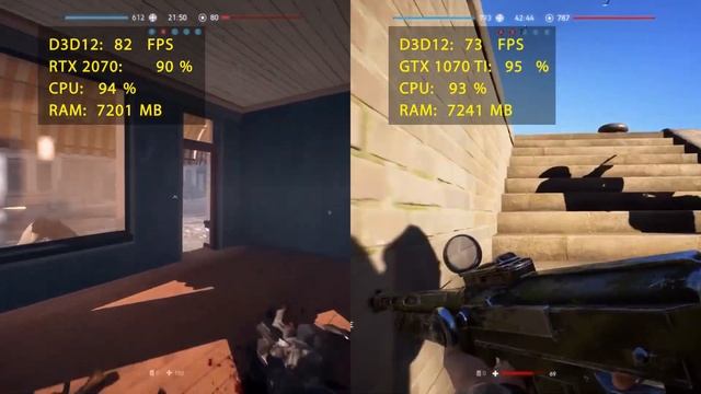 Nvidia RTX 2070 vs GTX 1070 Ti in Battlefield 5: GPU fps Test - Ultra settings Full HD DirectX 12