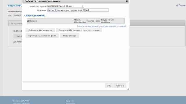 Как назначить действие на кнопку Power в пульте SPEAKY.