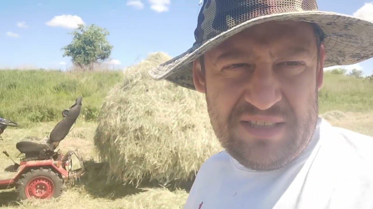 В этом видео я буду убирать сено с поля в копну, а вечером поеду на рыбалку с семьей на реку.