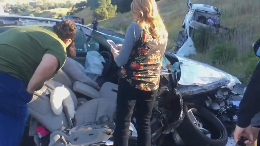 На трассе 101 в Америке произошла жуткая авария: одну машину буквально разорвало пополам, пассажир вылетел из неё, а девушка-водитель осталась за рулем. И главное, каким-то чудом все выжили.