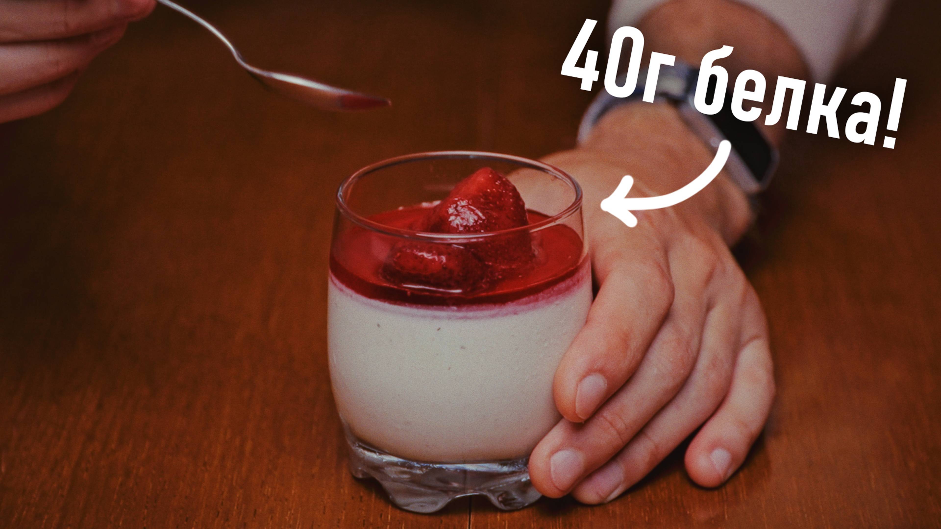 Сегодня мы приготовим низкокалорийную версию классического итальянского десерта Панакота, который может помочь сбросить вес. Классическая панакота делается только на одних сливках и сахаре из за чего конечный рецепт может содержать в себе до 400 калорий на 100г. Поэтому нам нужно несколько ингредиентов, чтобы снизить количество калорий. Для начала вам потребуется 5г желатина, высыпайте в стакан и залейте 20г теплой воды, перемешайте до однородной массы и оставьте на несколько минут в сторону, а пока стоит берем кастрюлю. Поместите ее на весы и вылейте в кастрюлю 150г 1.5% молока, 100г сливок 33% жирности и 220г греческого йогурта с жирностью 0.2%, далее добавляем пакетик ванилина, оригинальная панакота делается со стручком ванили, но камон, я стараюсь делать рецепты максимально простыми, чтобы можно было готовить вкусно и худеть, поэтому берем пакетик ванилина. Далее добавляем подсластителя, чтобы рецепт получился таким же сладким как у меня, то вот такая стевия у меня и добавляю ее я 5 чайных ложек. Я показываю потому что все подсластители разные и конкретно этот не добавляет горький привкус, как это бывает с некоторыми подсластителями. Далее берем кастрюлю и ставим на мелкий огонь и начинаем постоянно помешивать, после того как все перемешалось, добавляем наш желатин и продолжаем помешивать, пока все не станет однородной массой, чтобы не было никаких комков это важно. На огне я держал примерно 2 минуты, не больше, вся суть в том чтобы подогреть желатин немного и чтобы он растворился со всем остальным. Как только это произойдет можно выключать плиту. Остается только разлить по стаканам и поставить в холодильник до тех пор пока все не застынет. На это может потребоваться много времени. После того как все застынет, можно есть, либо покрыть сверху любыми фруктами или ягодами. Я взял пакет замороженной клубники и добавил собственно клубнику сверху и полил соком из пакета. Приятного аппетита! Во всей кастрюле, что мы приготовили содержится 363 калории, 37г углеводов, 40г белка и 6.7г жиров. Если рецепт понравился, то подпишись на мой телеграм, ссылка внизу.