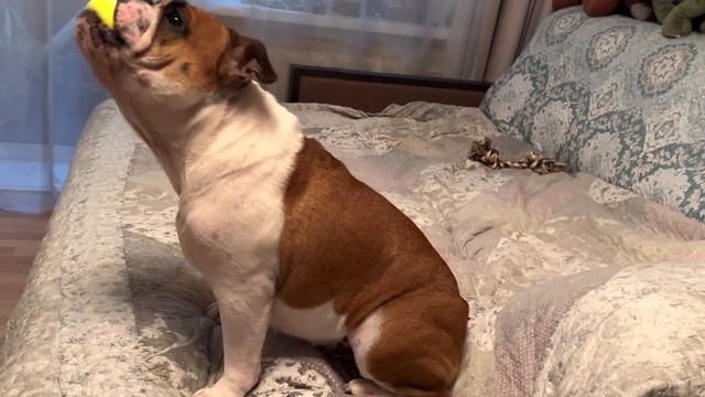 Реакция английский бульдожки Черри на новый мяч
