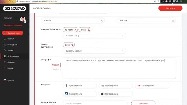 GIG&CROWD: how to fill artist's profile // как артисту заполнить свой профиль