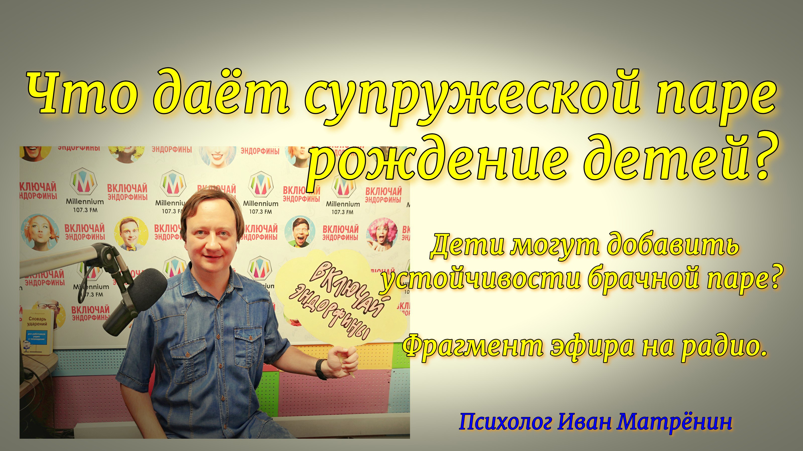 Это видео на тему семьи, современных тенденций в отношениях, а также психологии отношений называется, «Что даёт супружеской паре рождение детей? Дети могут добавить устойчивости брачной паре? Фрагмент эфира на радио». В эфире на радио возник вопрос про то, нужны ли дети в семье и не лучше ли жить без них. В этом видео фрагмент эфира на радио, в котором я отвечаю на этот вопрос. Рождение детей является важным этапом, влияющим на устойчивость семьи. Уточню также то, что если семья без детей имеет множество проблем, то рождением ребёнка эти проблемы, скорее всего, не решатся. Речь скорее идёт о том, что если в паре всё идёт отлично, то рождение ребёнка поможет это сохранить. Подробнее, в этом видео. Приятного просмотра! Мой канал в яндекс.дзен - https://zen.yandex.ru/profile/editor/ivanmatrenin. Здесь много текстов и видео на эту и другие темы по психологии и отношениям. Ссылка на это видео в яндекс дзен – https://zen.yandex.ru/video/watch/61a26d9b241da338d136f10c * Мой канал в YouTube - http://www.youtube.com/c/ПсихологИванМатрёнин. Ссылка на это видео в YouTube – https://youtu.be/HAKcaGTrGMY.