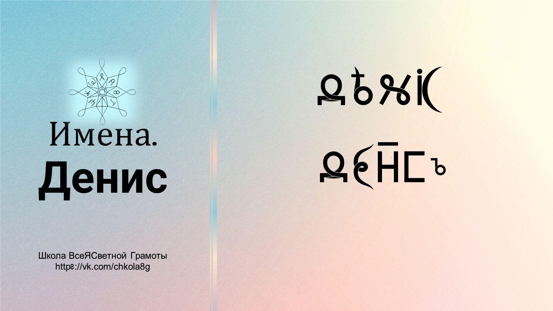 В этом видео мы поговорим о таком Имени как "Денис" с точки зрения ВсеЯСветной Грамоты. Автор видео - Татьяна Константиновна Б.-С. Страница в ВК - https://vk.com/tkbaiko8a Для тех, кто хочет выразить благодарность автору видео и поспособствовать развитию канала: Сбербанк: 2202206172325172 МИР (Татьяна Константиновна С.) ГазпромБанк: 2200011808355474 МИР (Татьяна Константиновна С.), , карта привязана к номеру телефона +79657801147 Школа ВсеЯСветной Грамоты в ВК https://vk.com/chkola8g Литература и обучающие курсы по ВсеЯСветной Грамоте https://vk.com/lavkagramotew #Этимология #ВсеЯСветнаяГрамота #ВГ #ШколаВГ #etymology #Грамота #ЭтимологическийСловарь #ВсеЯСветная #учимграмоту #Денис