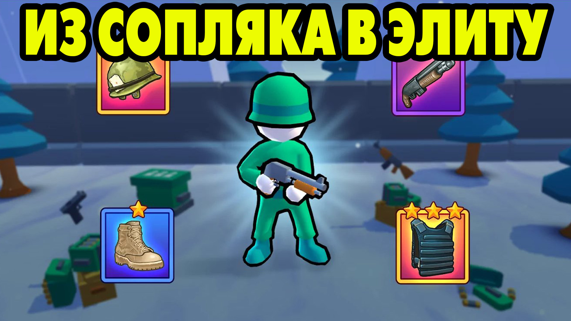 Плейлист игры - https://clck.ru/336rhi Stickman of Wars: RPG Shooter для Андроид — это прикольный экшен, где пользователям предстоит соперничать против реальных игроков со всего мира. А соперничать Вы будете посредством сражений. Получите в свое распоряжение своего первого бойца и отправляйтесь на локацию. Начинайте изучение местности и добычу ресурсов, чтобы построить свою собственную военную базу. А также не забывайте, что при фарме ресурсов и строительстве Вам постоянно нужно быть на чеку, чтобы другие игроки не уничтожили Вас. Сражайтесь с силами своих соперников и делайте все возможное, чтобы как можно быстрее прокачать собственную боевую мощь. СВОБОДА ДЕЙСТВИЙ Во время поединка каждый игрок получит полную свободу действий. Выбирайте сами, как Вам действовать. Можете бегать по карте и сразу же сражаться с врагами, а можете сначала заняться постройкой своей базы, а после чего приступать к сражениям. Добывайте ресурсы для строительства разнообразных укреплений и сооружений, а так же не забывайте про крафт оружия, который занимает здесь далеко не последнее место. ЛОКАЦИИ В "Stickman of Wars: RPG Shooter" присутствуют различные локации, среди которых окажутся: Зимние карты Пустыня И другие локации. Играйте на любой понравившейся карте, делая все возможное, чтобы побеждать всех оппонентов на очередной локации. ПРОКАЧКА Помимо крафта в игре присутствует прокачка. Улучшайте своих солдатов добывая им каски, обувь, оружие и бронежилет максимального уровня. Зарабатывайте деньги прямо во время сражений и тратьте их на покупку разнообразных предметов и улучшений. Обставляйте свою базу всем необходимым и обеспечивайте ей хорошую защиту, чтобы другие игроки никогда не смогли взять ее штурмом и отнять у Вас все накопленные ресурсы. Если Вы искали забавную многопользовательскую войнушку с приятной графикой и различными возможностями, то обязательно обратите внимание на "Stickman of Wars: RPG Shooter". На нашем сайте представлена взломанная версия приложения, которая сможет порадовать большим количеством денег. Устанавливайте данную игрушку на свое устройство и дайте ей собственную оценку.