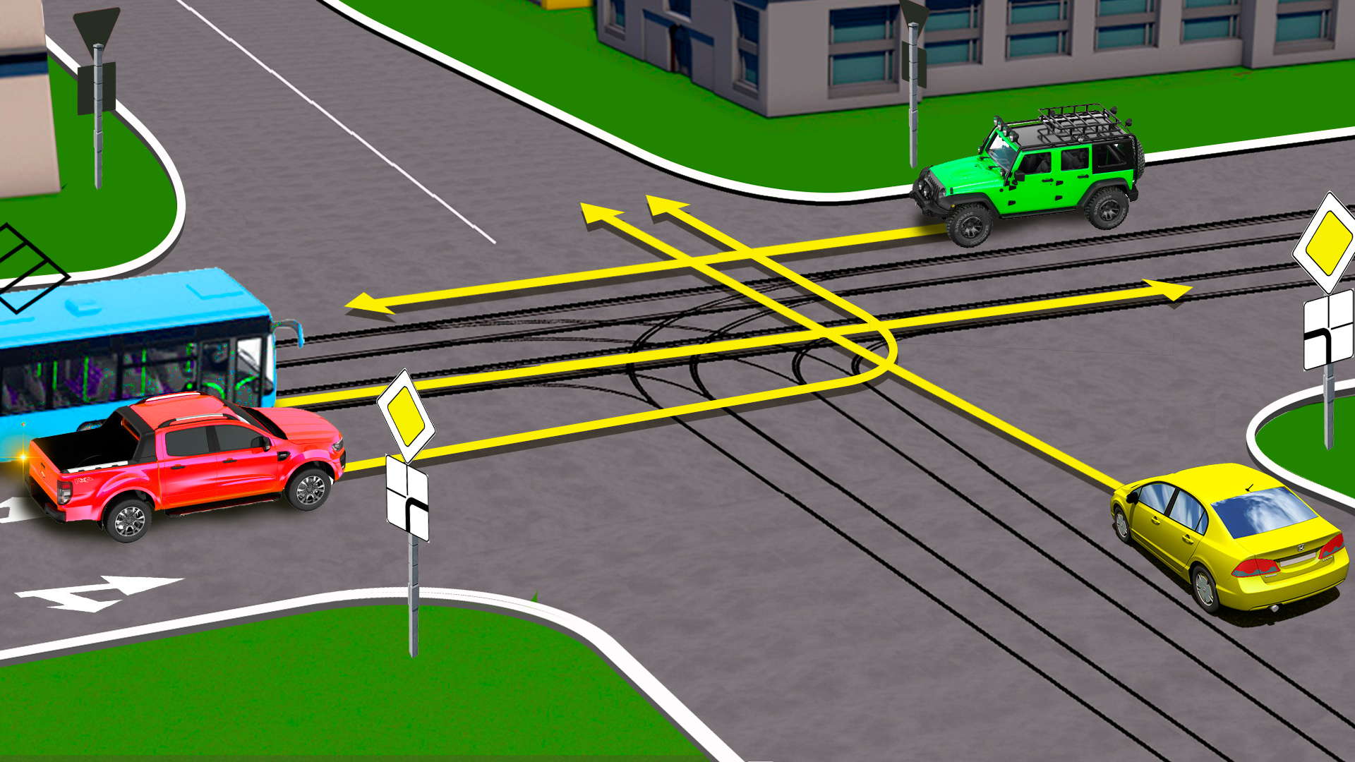 В какой последовательности проедут перекресток наши водители? Не все водители равны, даже на равнозначном перекрестке. Решите эту задачу сами и поделитесь задачей с друзьями. Возможно, им тоже будет интересно?