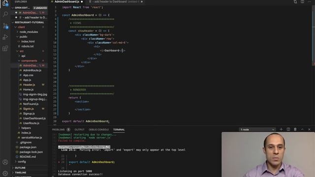 In this video I add a header to the AdminDashboard component.
