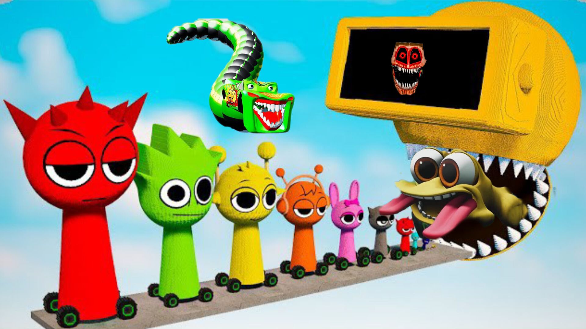 СПРУНКИ майнкрафт мультфильм ВСЕ МОНСТРЫ, Большие и маленькие машины, ПОЖИРАТЕЛЕМ АВТОМОБИЛЕЙ И АВТОБУСОВ – BeamNG Drive