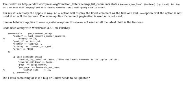 Wordpress: $reverse_top_level works the opposite way according to Codex?