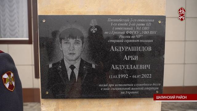 В Шалинском районе открыли мемориальную доску, посвященную памяти жителя села Мескер-Юрта, старшего сержанта полиции Арби Абдурашидова. Он героически погиб, участвуя в специальной военной операции. В местной школе собрались родственники и боевые товарищи Арби. Они вспоминали его как крайне мужественного и религиозного сына чеченского народа. Арби Абдурашидов награжден Президентом России Владимиром Путиным орденом Мужества посмертно. Награду передали родственникам бойца.