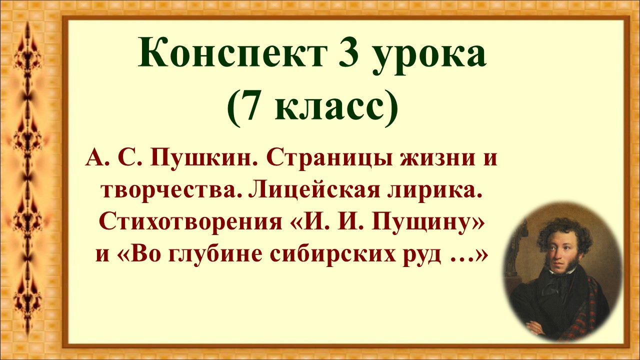 3 урок 1 четверть 7 класс. Пушкин. Страницы жизни и творчества. Лицейская лирика