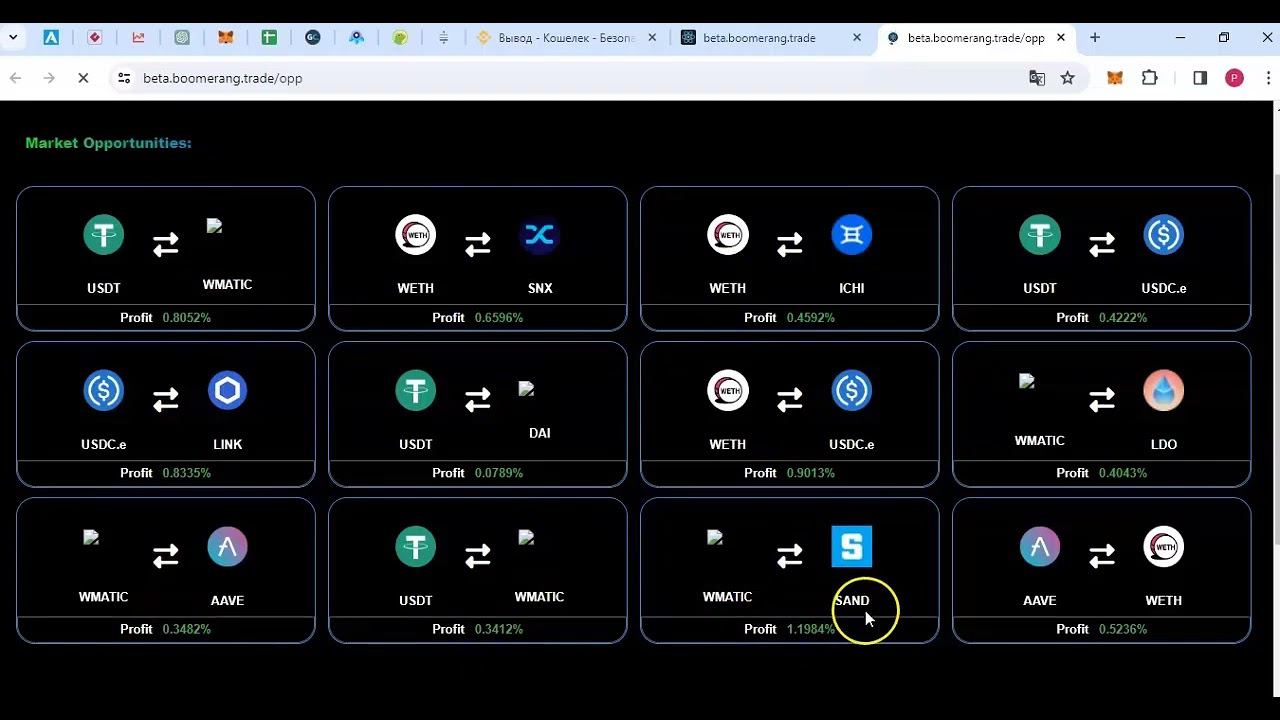 Крипто арбитраж с флеш кредитом на 1500$ на платформе Wass Boomerang
