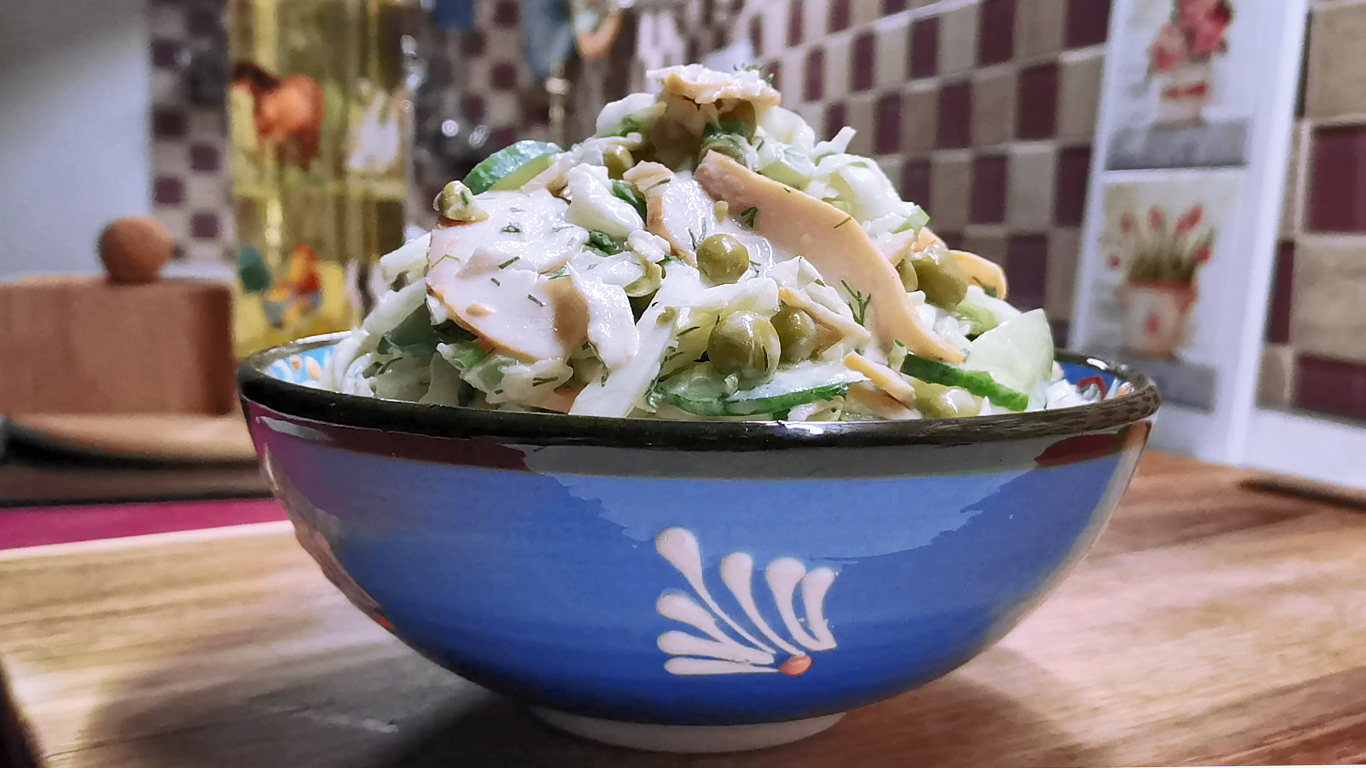 Потрясающий НОВЫЙ САЛАТ с капустой и курочкой! Как закуска отлично и летний ужин можно заменить!.mp4