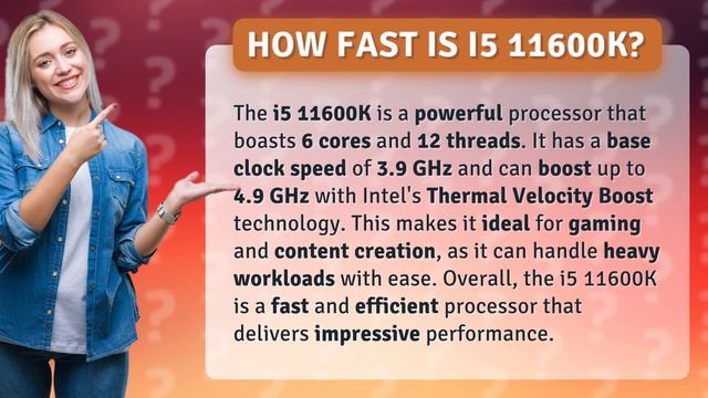 Get ready to witness the power of the i5 11600K! With 6 cores and 12 threads, this processor is a true powerhouse that can handle anything you throw at it. Whether you're a gamer or content creator, the i5 11600K is sure to impress with its base clock speed of 3.9 GHz and Thermal Velocity Boost technology that can boost it up to 4.9 GHz. So sit back, relax, and get ready to experience the lightning-fast performance of the i5 11600K!