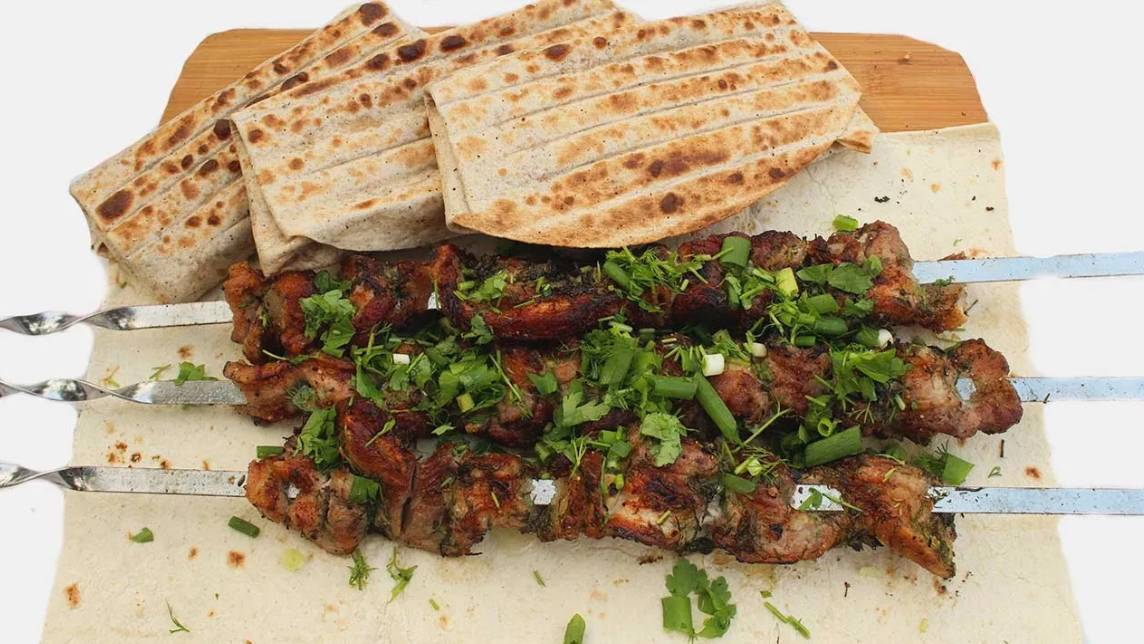 Шашлык из свиной грудинки получается очень сочный и нажористый. Любителям жареного сала, очень понравиться. А как закуске ей просто нет равных! Это блюдо из свиной грудинке больше закуска чем шашлык. Плюсом при жарке грудинки, является естественно то, что ее не надо долго мариновать. Свиная грудинка приготовленная таким способом получается нежной и мягкой. У многих из вас нет времени на приготовление грудинки в духовке или отваривать ее в шелухе а тем более коптить. Приготовьте этот рецепт, он не займет у вас много времени, а подарит вкусную закуску. Закуска из лаваша, которая состоит из зелени петрушки, укропа, лука и натертого сыра, очень сильно дополняет блюдо из свиной грудинки. Да и вообще закуска из лаваша может дополнить любое блюдо и любой шашлык. Закуска из лаваша 1:45