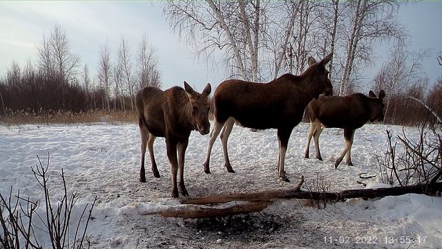 Природа в объективе. Семья лосей у солонца.