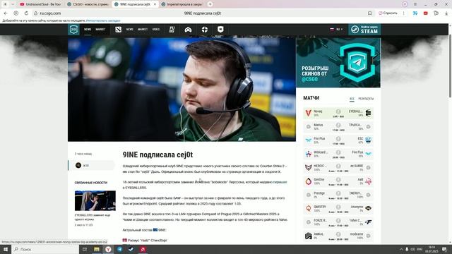 News Overview Counter Strike 2: 9INE подписала cejot