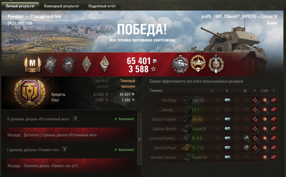 РУИНБЕРГ МАСТЕР на Cruiser Mk IV ОПЫТ: 1286 УРОН: 2820 медали НАЙДИНА ВОИН КАЛИБР и 7 ФРАГОВ