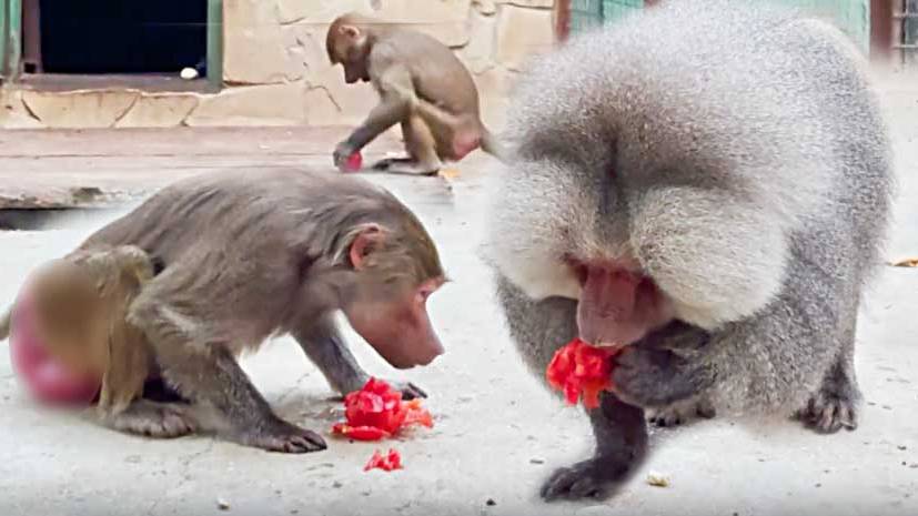 К Люсе, Елисею и Лиде пришла команда Ночного доЖора!Малыш макачонок пытался отобрать у мамы кабачок!