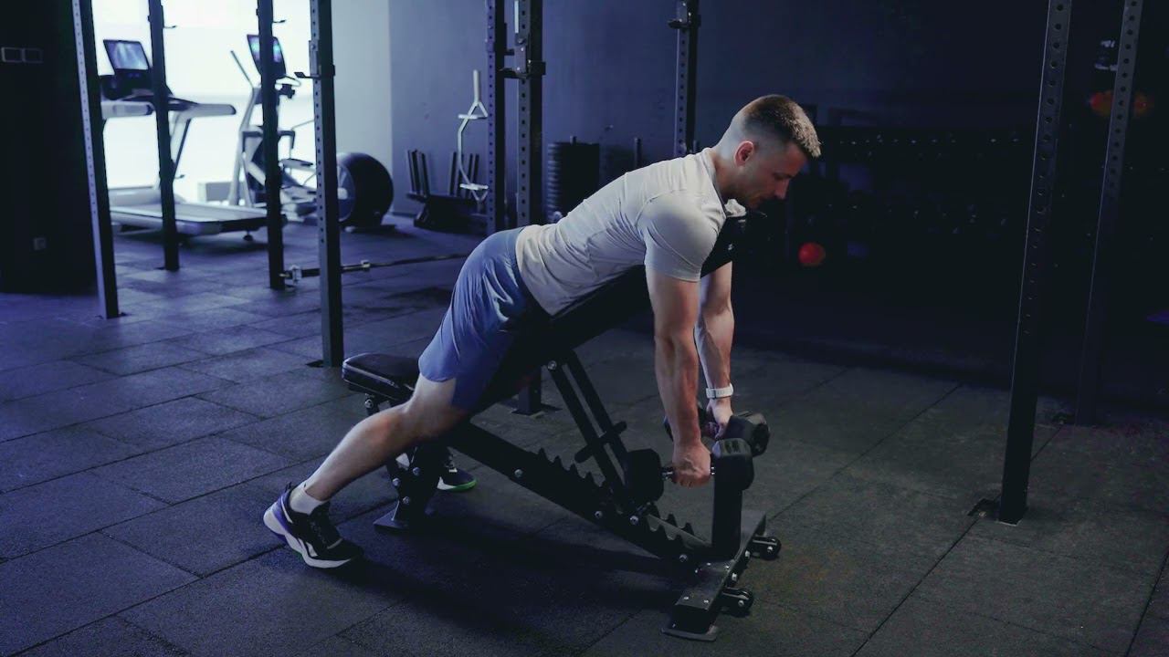 Тяга гантелей на наклонной скамье с медленным опусканием/Incline DB row and slow down