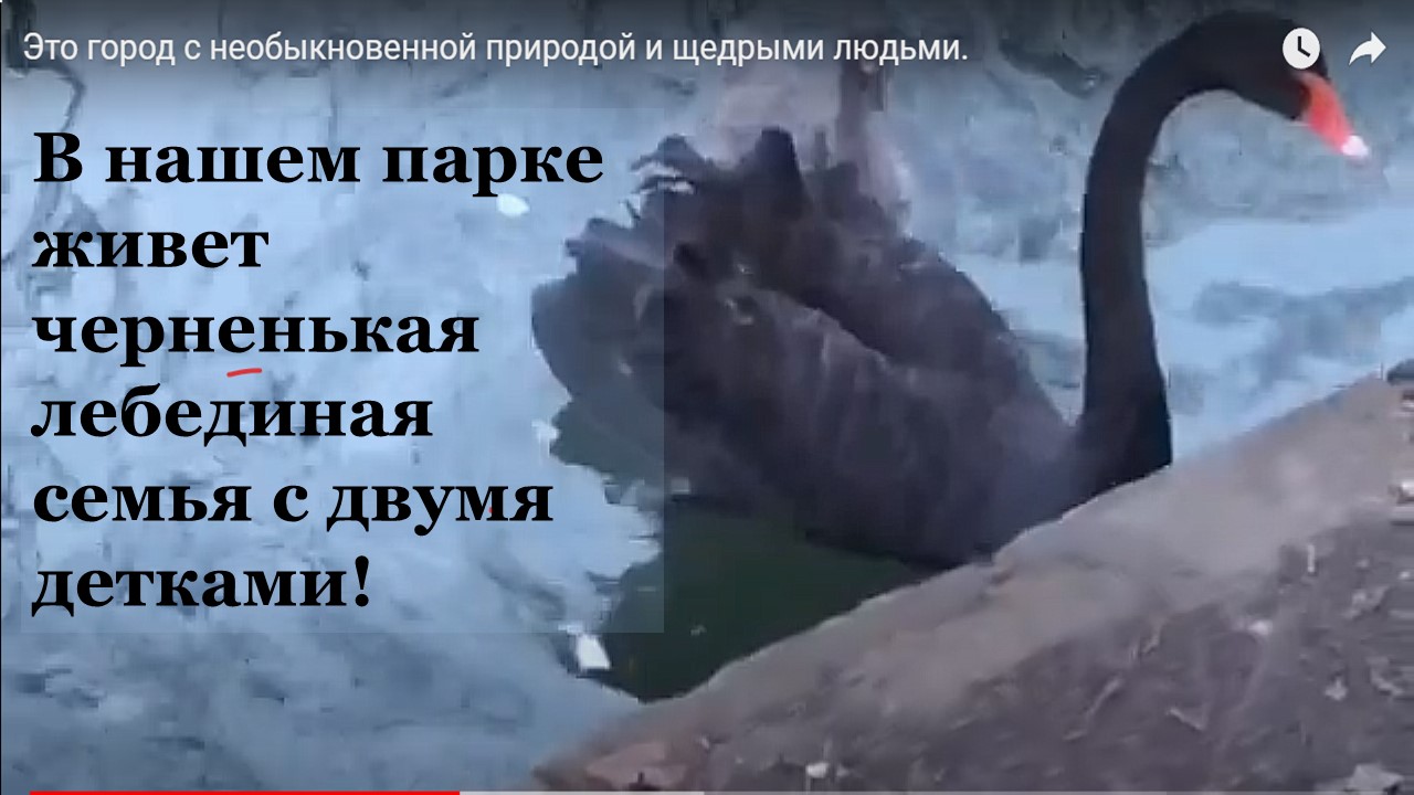Это город с необыкновенной природой и щедрыми людьми! Наш город славится не только цветами. фресками на стенах домов, историей, прекрасными щедрыми людьми, но главное , здесь живет семья лебедей черных. У нашей семейной пары появились 2 пока серых детеныша. Забавные и один везде за мамочкой плавает, как настоящий маленький ребенок. Еще у нас здесь рядом лес, спортивная дорожка со спортивными снарядами, деревянными, примитивными, но зато бесплатно и доступно всем. Хорошо живем, красиво!
