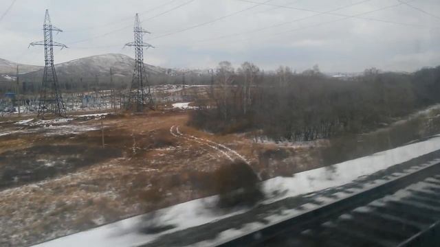Отправление со станции Кувандык и снежные горы из окна