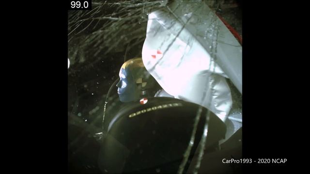 The vehicle traveling at 20 Mph/32 Km/h into a narrow pole to simulate sliding into a tree or pole. Driver is a 5th Percentile Female. NHTSA's Side Pole Crash Test of the 2020 Kia Soul. Driver HIC 322 *** (Three Stars)