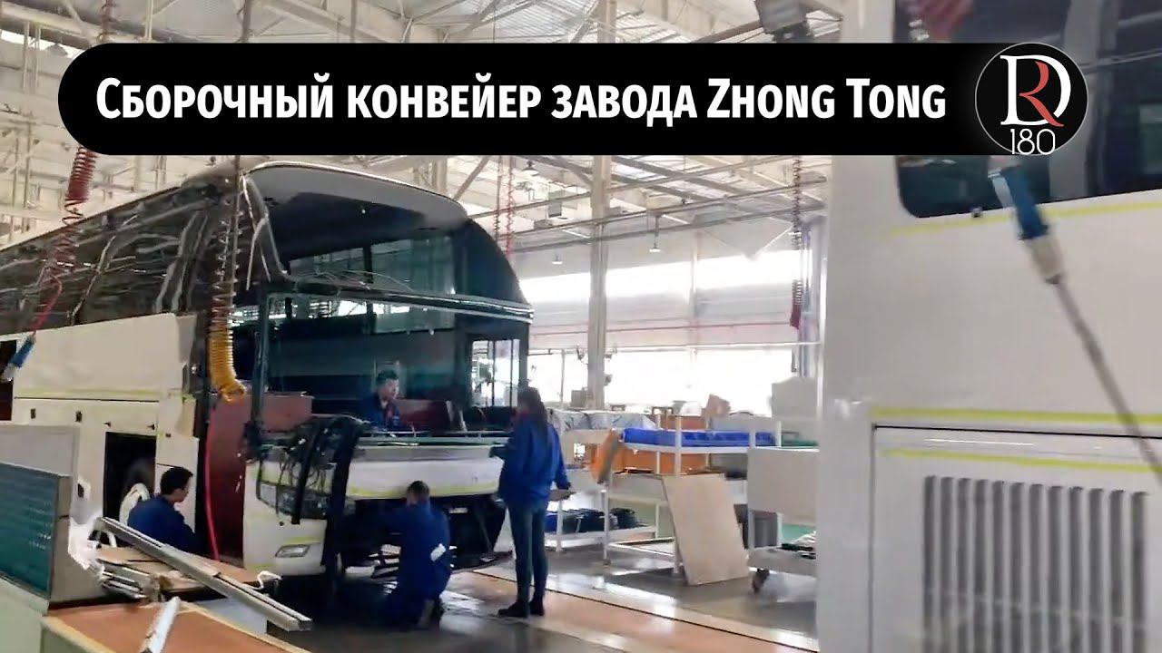Сборочный конвейер кузовов междугородний и городских автобусов. На котором, собственно, и собирают известный у нас Зонг Тонг 6127. Туристический автобус Зонг Тонг 6127 Самый большой по вместимости туристический автобус в России. Самое большое расстояние между сиденьями. Самая богатая комплектация. На 1 500 000 рублей дополнительных опций в базовой версии автобуса. Лизинг с минимальным первым взносом, сроком на 5 лет, адекватные процентные ставки. Склад запасных частей. Каталог. Сервисная поддержка продукта. Все инструкции на русском. Взаимозаменяемые запасные части от Ютонг (Yutong), Кинг Лонг (King Long), Голден Дракон (Golden Dragon), Хайгер (Higer) • Независимую подвеску • Рулевое управление ZF • Багажный отсек 9,5 м³ • 70% чернойтонировки на окна • Две двери • Кондиционер • Механизм открывания дверей, установленный в салоне • Сиденья откидываются назад, наклон 35%, перемещаются в центр • Трехточечные ремни безопасности • Улучшенное место водителя • Торпедо нового образца • Рычаг КПП установленный в торпедо • IPad на месте водителя - управление аудио и видео • Шторы • Шторы на лобовое стекло • 8 печек отопления в салоне • Северное исполнение автобуса • Багажные полки • Системы индивидуального обдува и освещения, кнопки вызова водителя • Тканевую обивку боковин и полок • Два телевизора размерами 22 и 19 дюймов • ГЛОНАСС с устройством вызова экстренных служб • Подготовку под установку тахографа • 4 камеры в салоне, жесткий диск для хранения записей с камер • Камеру заднего вида • Проблесковые маячки • Настил пола - фанера и линолеум • Два лобовых стекла. Верхнее тонированное • ECAS паромник - система поднятия и опускания кузова • Два бака по 300 литров каждый общим объемом 600 литров. • Цвет кузова: на выбор (бесплатно) • Кулер • Холодильник • Спальное место водителя с кондиционером Базовые технические параметры автобуса Габаритные размеры (мм): 12 590×2 550×3 830 Расстояние между осями (мм):6 400 Внутренняя высота салона (мм): 2 020 Масса транспортного средства (кг)/снаряженная масса: 13 750…14 500/18 000…19 500 Колея передних/задних колёс (мм): 2 040/1 860 Угол разворота: 8/7,5 Максимальная скорость (км/ч): 120 Параметры двигателя: Модель двигателя: Cummins ISL 375 50, 375 л.с. Экологический класс: Евро 5 с использованием системы SCR AD Blue («мочевина») Объём(м³): 8 880 Максимальная мощность (кВт/rpm): 268/2 100, Тип топлива: Дизель Объём топливного бака (л): 300+300, заправка с двух сторон Сцепление: немецкая марка «Sachs», MFZ430, сухое, однодисковое Коробка передач: FAST 6DS 180T, механическая Подвеска: пневматическая JINBEN, 6 баллонов, 6 амортизаторов, подъём кузова KONRR Рулевая система: ZF 8098 гидравлический руль Мосты: DONGFENG Тормозная система: Двухконтурная пневматическая система «Wabco»; ABS «Wabco»; стояночный тормоз - пружинная система энергоаккумуляторов; осушитель воздуха «Wabco», ретардер - электромеханический тип, Terka. Все тормоза дисковые. Первая пассажирская дверь: пневматическая, одностворчатая с механизмом защиты от защемления, двойное остекление, с пультом дистанционного управления Вторая пассажирская дверь: пневматическая, одностворчатая с механизмом защиты от защемления, двойное остекление, с пультом дистанционного управления Боковые окна: Тонированные, двойное остекление Сиденья: 33+1+1; 51+1+1; 53+1+1 ткань (материал на выбор, ткань + кожа) с трехточечными ремнями безопасности Сиденье водителя: Пневматическое, в цвет салона, п