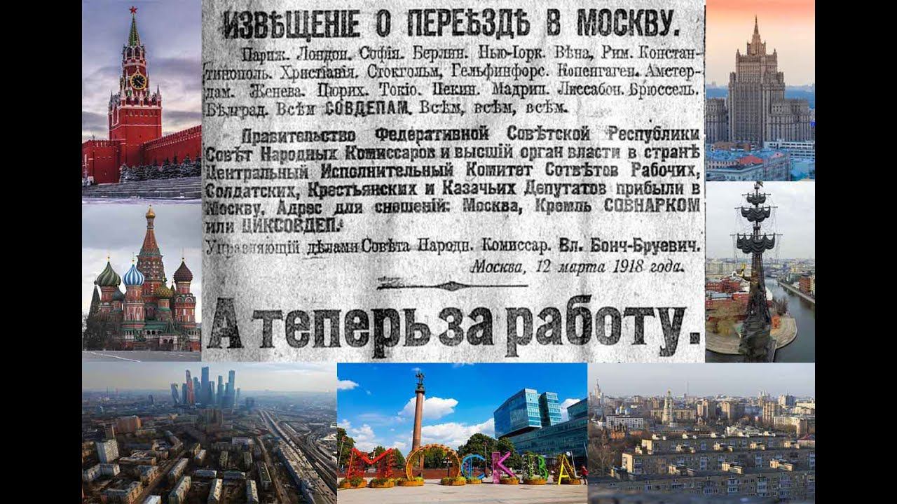 12.03.2021 12 марта. Не отвлекаясь на прочие события дня, завершим начатую вчера тему, ибо странно было бы сказать «А», но не сказать «Б» (или, вернее, сказать «П», но не сказать «М»). Итак! Поздно вечером 11 марта 1918 года Правительство Советской Республики прибыло из Петрограда в Москву. 12 марта управляющий делами Совета народных комиссаров Владимир Бонч-Бруевич подписал «Извещения о переезде в Москву». В тот же день Л.Д. Троцкий от имени ВРК при Петросовете опубликовал в «Известиях ВЦИК» сообщение, из которого можно было сделать вывод, что переезд Правительства не предполагает возвращения. Таким образом, 12.03.1918 года Москва в очередной и на сегодняшний день последний раз становится столицей страны. Формально ситуацию 16 марта 1918 года закрепил IV Съезд советов. Выиграла ли Москва от того, что приняла на себя эту роль? Проиграл ли Санкт-Петербург? Не знаю. Но, воздав вчера дань Санкт-Петербургу, логичным представляется сказать и о Москве – разной, пёстрой, противоречивой, контрастной, непредсказуемой. Именно о многоликости столицы стихотворение 2020 года … МОСКВА ВЫСОТОК И ХРУЩОБ © А.Я. Криницкий, 2021