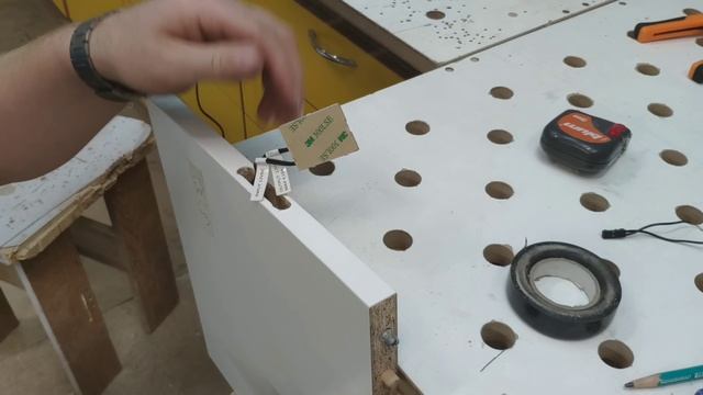 Светодиодная подсветка встроенная в ручку кухонных шкафов. Бесконтактный включатель.