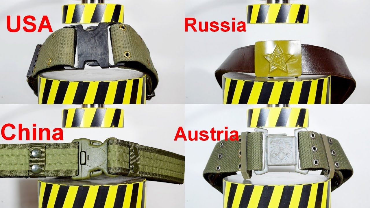 Using a hydraulic press, we will test the strength of military belts from different countries. Russia, USA, China, USSR
