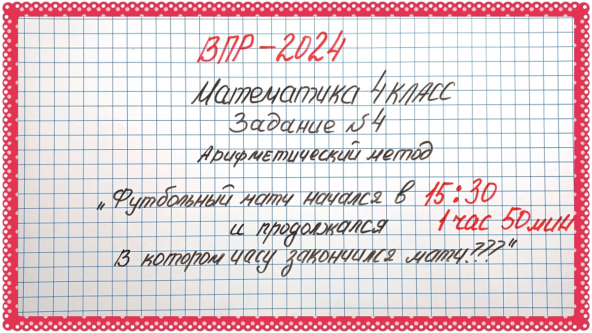 ВПР-2024. Математика 4 класс. Задание №4. Арифметический метод. Когда закончился матч