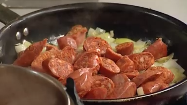 Овощи с испанскими колбасками чоризо