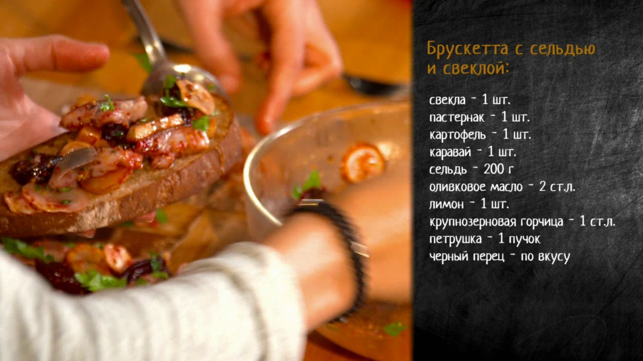 Рецепт брускетты с сельдью, свеклой и пастернаком