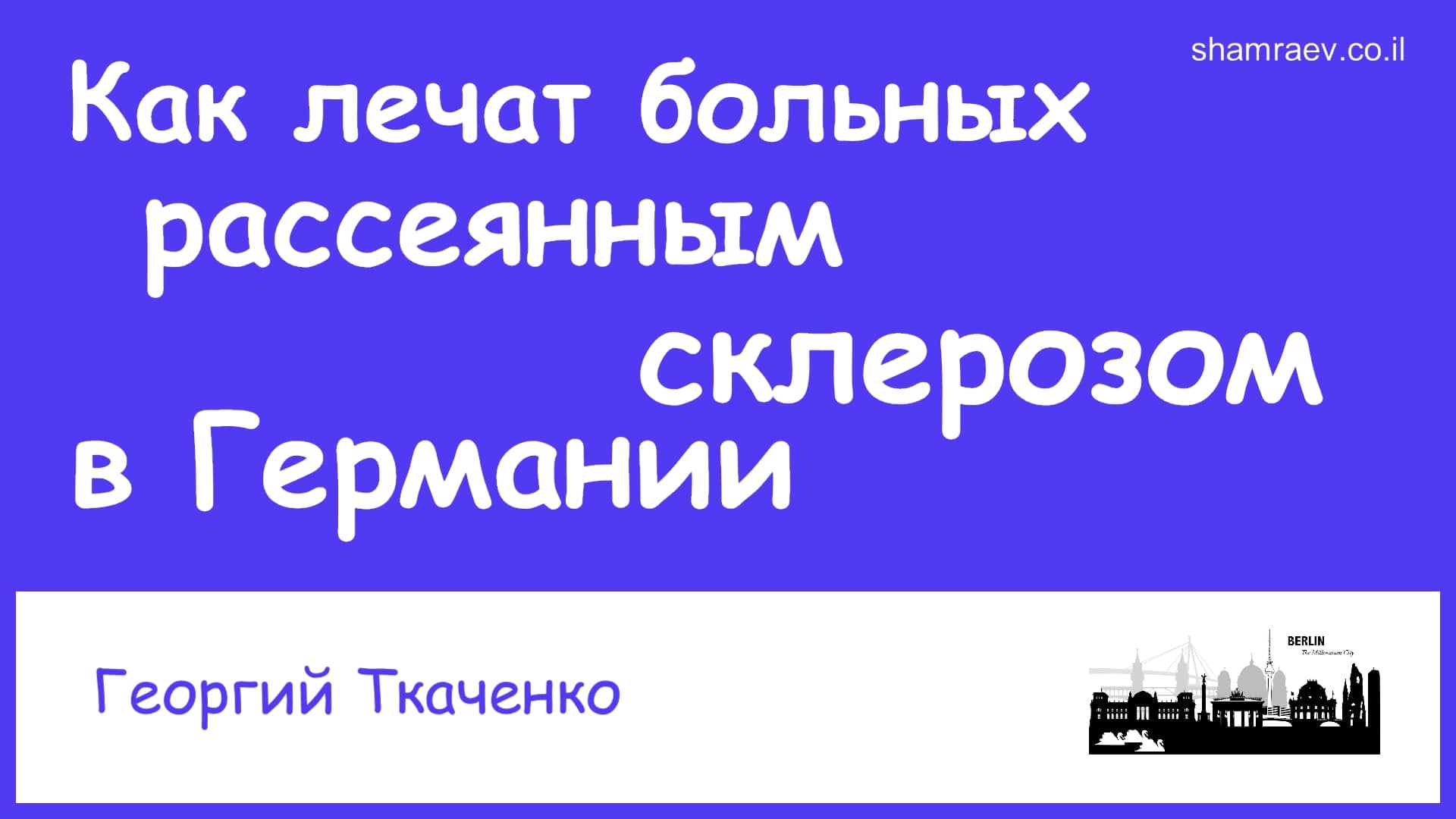 Как лечат больных рассеянным склерозом в Германии (2021) Дополнительную информацию можно получить по скайпу: petrshamraev с 8:00 до 22:00 (время московское) Руководитель Психотерапевтического Исследовательского Центра автор открытия в области медицины психолог-психотерапевт Петр Шамраев Тел: +972-52-529-95-91 Тел: +972-52-634-67-74 WhatsApp: +972526346774 Skype: petrshamraev E-mail: petrshamraev@gmail.com Web: http://shamraev.co.il YouTube: https://www.youtube.com/channel/UCBsxIQzzHaDglyTg7J6Bl1A YouTube: https://www.youtube.com/@user-tb6ej6ol2b/videos RuTube: https://home.strannik-j.org/channel/10134425/videos/ Одноклассники: https://ok.ru/kakvylech Вконтакте: https://vk.com/id342874893 Dzen.ru: https://dzen.ru/id/60c06e755fe9c068e6ba4b1d Vimeo: https://vimeo.com/user183147794 Livejournal: https://petrshamraev.livejournal.com/ TikTok: https://www.tiktok.com/@petrshamraev?lang=ru-RU Подпишитесь на мой канал, и вы всегда будете в курсе последних открытий